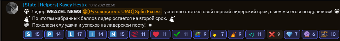 Сделали уникальную систему, которая отслеживает новых лидеров со всех серверов. Создаёт таблицу в канале со всеми текущими лидерами, датой их становления, дискордом, временем до конца срока. Если заявки открыты, то ссылку на заявки и т.д.