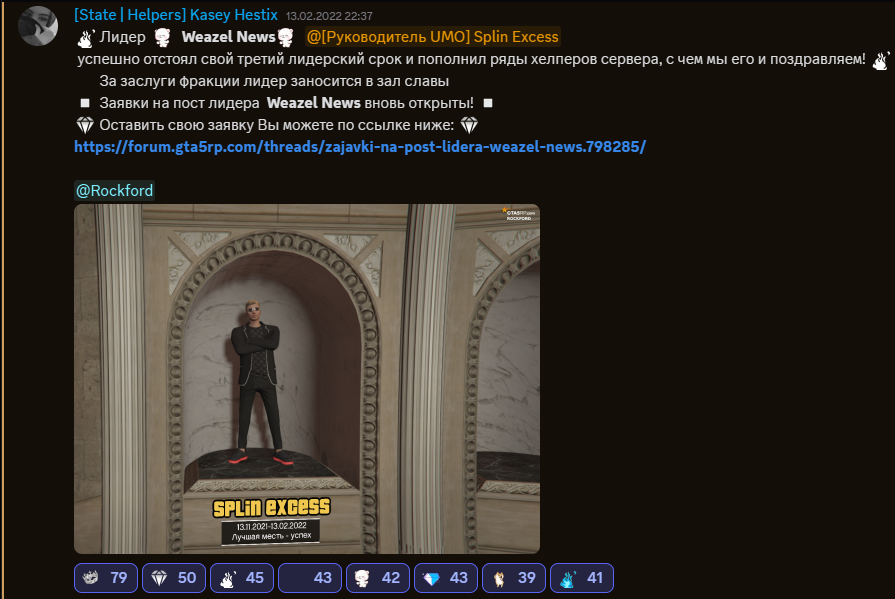 10 ноября первым лидером фракции Weazel News на новом сервере Rockford назначен Splin Fun.
