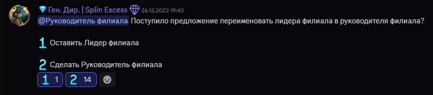 Заместитель Генерального Директора Gusein Moss и Исполнительный Директор Julia Vans запустили чемпионат структур. Любой сотрудник структуры имеет возможность принять участие в нем и получить Discord Nitro (ежемесячно) или Telegram Premium на один в год (в конце сезона) за свою активность в союзе.